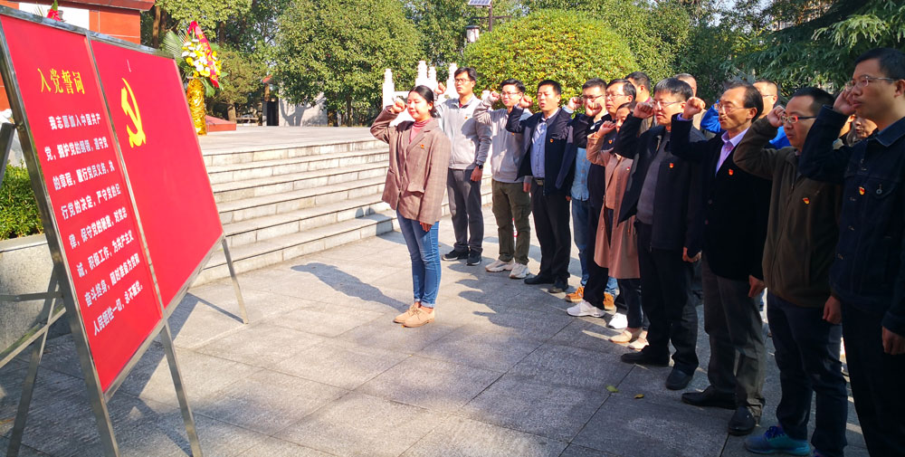 中心组成员在纪念馆讲解员的带领下,仔细观看了纪念馆内的照片、文物、绘画、雕塑、影像、场景复原等,追忆了邱少云烈士的英雄事迹以及抗美援朝的艰辛历程。在纪念碑前,全体成员面向党旗重温入党誓词。