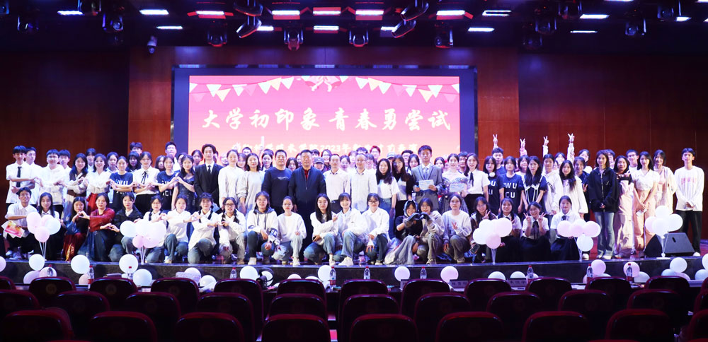 在北碚校区南区活动中心举行“大学初印象,青春勇尝试”新生才艺表演。学院院长赵永聚,党委副书记、纪委书记文武,团委书记、学生工作办公室主任孙海军,辅导员李洋、陈雪松、彭香、朱恒宇莅临现场与同学们共同观看演出并担任评委。
