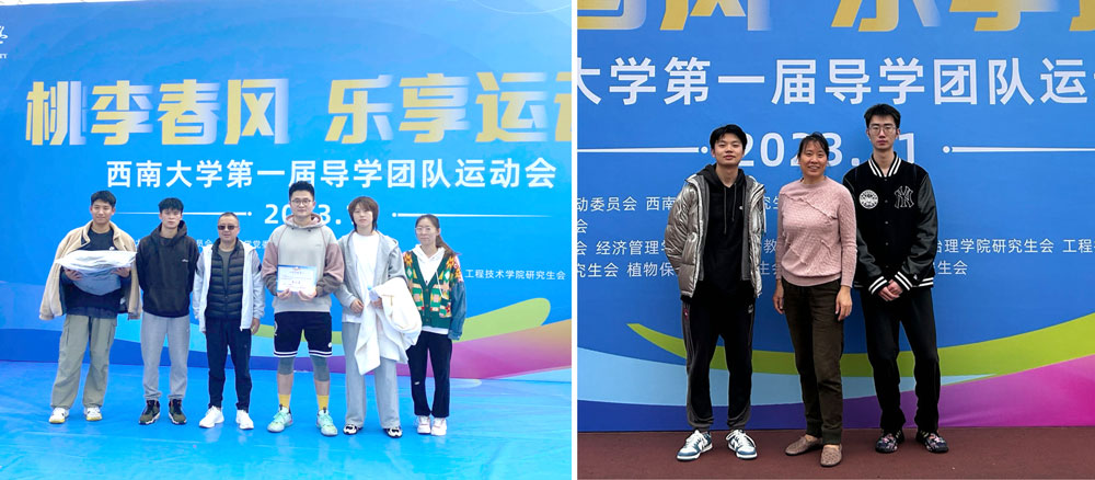 举行第一届研究生“桃李春风 乐享运动”导学团队运动会,学院导学运动队由刘安芳教授等5名老师和10名研究生组成,参加了趣味类项目和竞技类项目,并喜获佳绩。