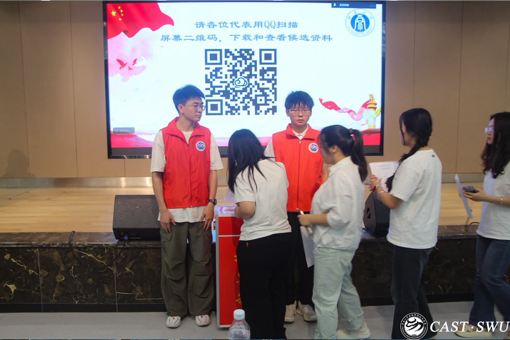 全体参会学生代表进行不记名投票,以差额选举形式民主选举学院2025-2026学年学生会执行主席。经过学生代表现场投票选举,大会选出2023级本科生谢天浩、黄玉妹、肖文靖3名同学为动漫
