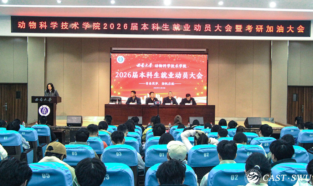 为促进2026届本科生高质量充分就业,11月19日,学院召开2026届本科生就业动员大会暨考研加油会,会议通过视频连线的方式在荣昌校区和北碚校区同时进行。学院党委书记赵智华,院长赵永聚,党委副书记兰英,副院长向钊、赵中权出席,2022级本科生辅导员、班主任和全体学生参加,会议由党委副书记兰英主持。