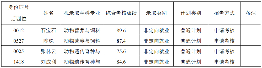 一、拟录取名单公示