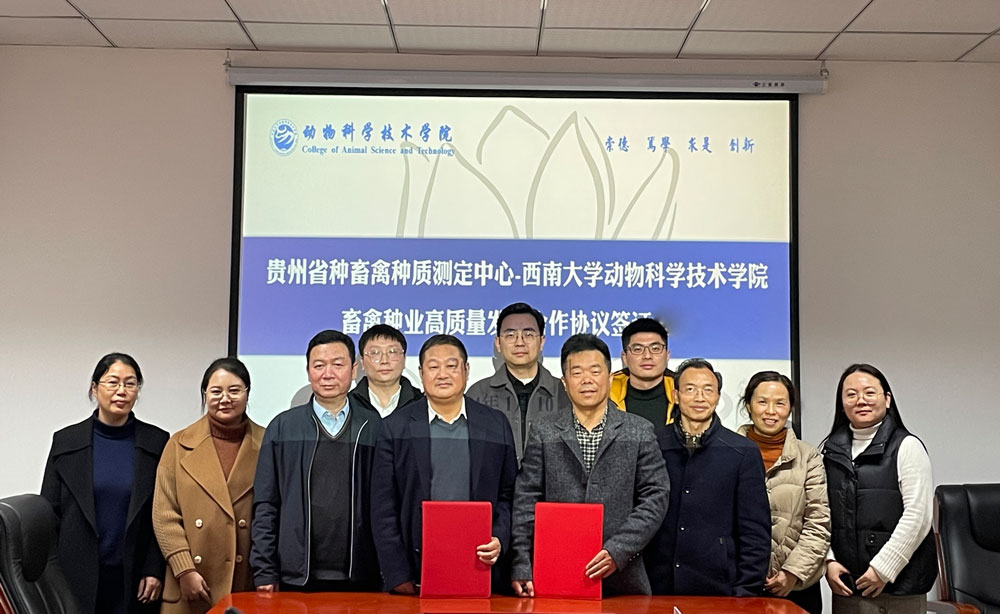 学院与贵州省种畜禽种质测定中心将以合作协议签订为新起点,在人才培养、技术提升、科学研究、应用推广等领域开展更多层次、更多形式的合作,共同推进渝黔地区畜禽种业高质量发展。