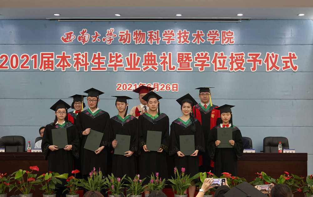 仪式在庄严的中华人民共和国国歌声中正式开始。周克勇副院长宣读学校有关准予2021届全日制本科学生毕(结)业的决定,毕业生代表上台领取证书。赵智华书记宣读了学校关于表彰2021年优秀大学毕业生和优秀毕业研究生的决定,主席台就座的同志分别为重庆市级优秀毕业生代表和校级毕业本科生代表颁奖。赵中权副院长宣读《动漫
