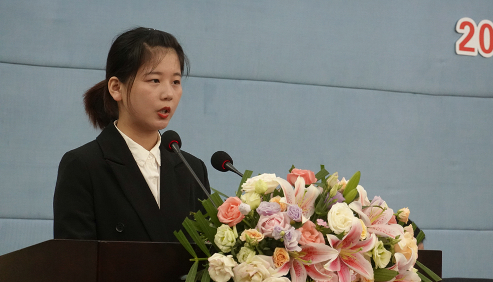 在校生代表吕雨杰表达了对全体2021级毕业生的感谢并送上祝福,表示将以学长学姐为榜样,继续努力学习,刻苦拼搏,放飞青春梦想。