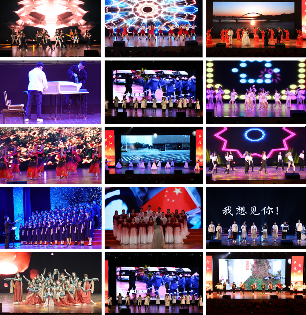 文艺晚会分为“千里冰封全民同抗疫,大地涌春举国获胜利”、“深化改革喜迎新机遇,青春勇担当更上一层楼”和“难忘今宵师生俱欢颜,校企携手共育时代新人”三个篇章,共有16个节目参加表演。节目精彩纷呈、形式多样,既有美丽动人的街舞、民族舞、古典舞,又有悦耳动听的铜管乐团合奏和合唱,还有趣味横生又创意新颖的配音秀以及扣人心弦的魔术。其中,学院教职工的朗诵合唱节目《没有共产党就没有新中国》,充分展示了新学院教职工良好的精神风貌,赢得了观众阵阵掌声。晚会在动漫