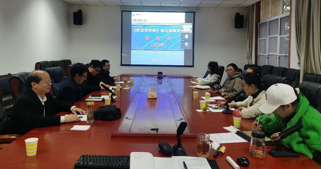 赵永聚教授、赵中权教授、兰茜副教授、付树滨博士、孙雅望博士、赵建军博士就《家畜育种学》2021年课程运行情况、2022年春季学期课程安排、线上课程建设情况以及理论课、实验课教材建设进行了总结交流。