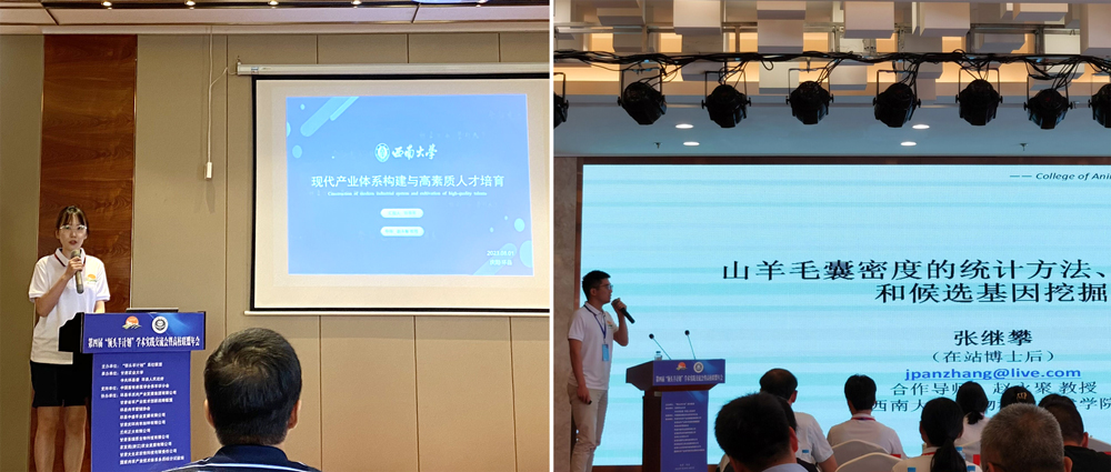 本次会议共有来自23所高校、4所科研院所、10余家企业的200余名代表现场参加,在线直播点击量高达20余万人次。“领头羊计划”高校联盟总顾问、农业农村部科技教育司原巡视员刘艳,秘书长、中国农业大学张微教授,中国畜牧兽医学会养羊学分会理事长、河北农业大学张英杰教授出席会议。赵永聚作了题为《我国绵、山羊种业振兴与人才培养思考》的特邀报告;学院在站博士后张继攀、硕士生陈美希分别在大会上作了《山羊毛囊密度的统计方法、空间分布和候选基因挖掘》《现代产业体系构建与高素质人才培养》的报告,陈美希的报告被评为学生组优秀奖。