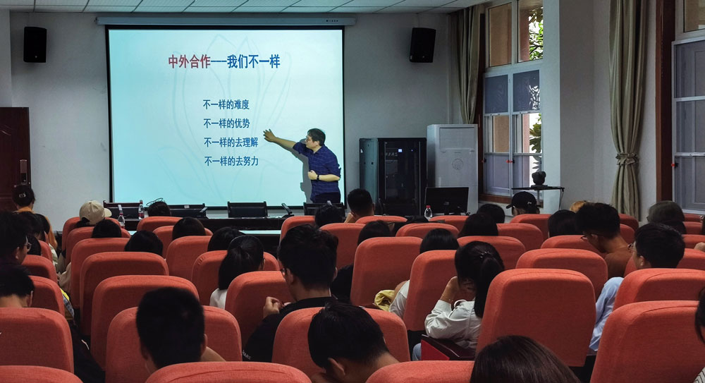 向钊首先介绍了动物科学专业本科培养目标、培养要求、核心课程、毕业要求等,强调动物科学专业是一门涉及动物遗传育种、营养饲料、疾病防治、生产管理等多个领域的综合性专业,旨在培养具备理论知识和实践技能,能够从事畜牧业生产、科研、教育、管理等工作的高素质人才,可在畜牧企业、农业部门、高等院校和科研机构就业。杨游介绍了“动物科学中外合作办学2022版培养方案”,指出学院与澳大利亚詹姆斯库克大学(James Cook University,JCU)合作开设动物科学专业,给学生带来了很多优势,可以享受JCU优质的办学资源和理念,包括世界一流的师资和设施、多元化的校园文化、优美的自然环境等。李凤翔介绍了教学工作办公室制定和实施教学计划、规章制度、指导和监督教师和学生的教与学活动等职责和工作内容,强调了学生在选课、考试、学分、成绩、实习、毕业要求等方面的重要性。孙雅望介绍了中外合作办学项目的“2+2”、“3+2”、“4+0”培养模式,鼓励同学们根据自己的兴趣、能力和目标,选择适合自己的培养模式,开拓国际视野和提升专业水平 。