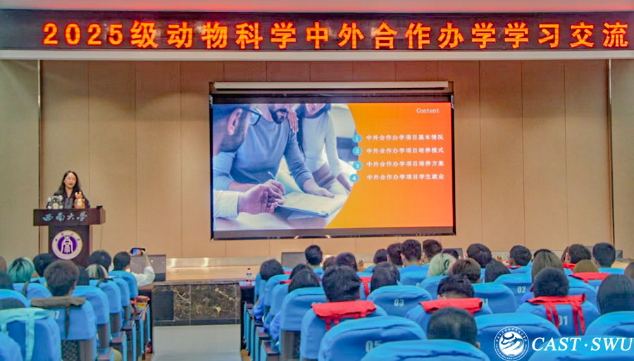 2025年9月21日,学院成功举办2025级动物科学中外合作办学项目新生学习交流会。会议由学院人才培养办公室主任李洋主持,澳大利亚詹姆斯库克大学(James Cook University,JCU)国际合作部副经理黄丹丹、学院中外合作办学与国际交流办公室副主任杨游老师、在校师生代表及2025级全体新生共同参与。