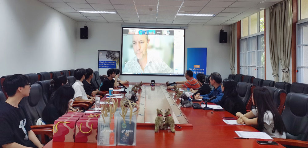 的良好形象。JCU理工学院院长Ron White教授在讲话中祝贺即将到访的留学生,他介绍了JCU的历史、地理、文化和教育特色,表示JCU将为同学们提供最优质的服务和支持。鼓励同学们勇敢地追求自己的梦想,充分利用JCU丰富的资源和设施,开拓自己的视野和能力。JCU 项目协调专员KyallZenger教授为学生和家长展示了专业设置、课程安排、注册选课、学业支持、住宿接机等事宜,并详细解答了同学们关心的问题,给出了一些实用的建议和提示,同时还分享了一些成功留学的经验和案例,帮助同学们更好地规划自己的留学之路。AEMG相关老师针对学生出入境、银行支付、海外安全等注意事项进行了讲解,强调了遵守当地法律法规、保护个人财产安全等方面的内容,提醒同学们及时与家长和老师保持联系,及时反馈自己的情况和需求。